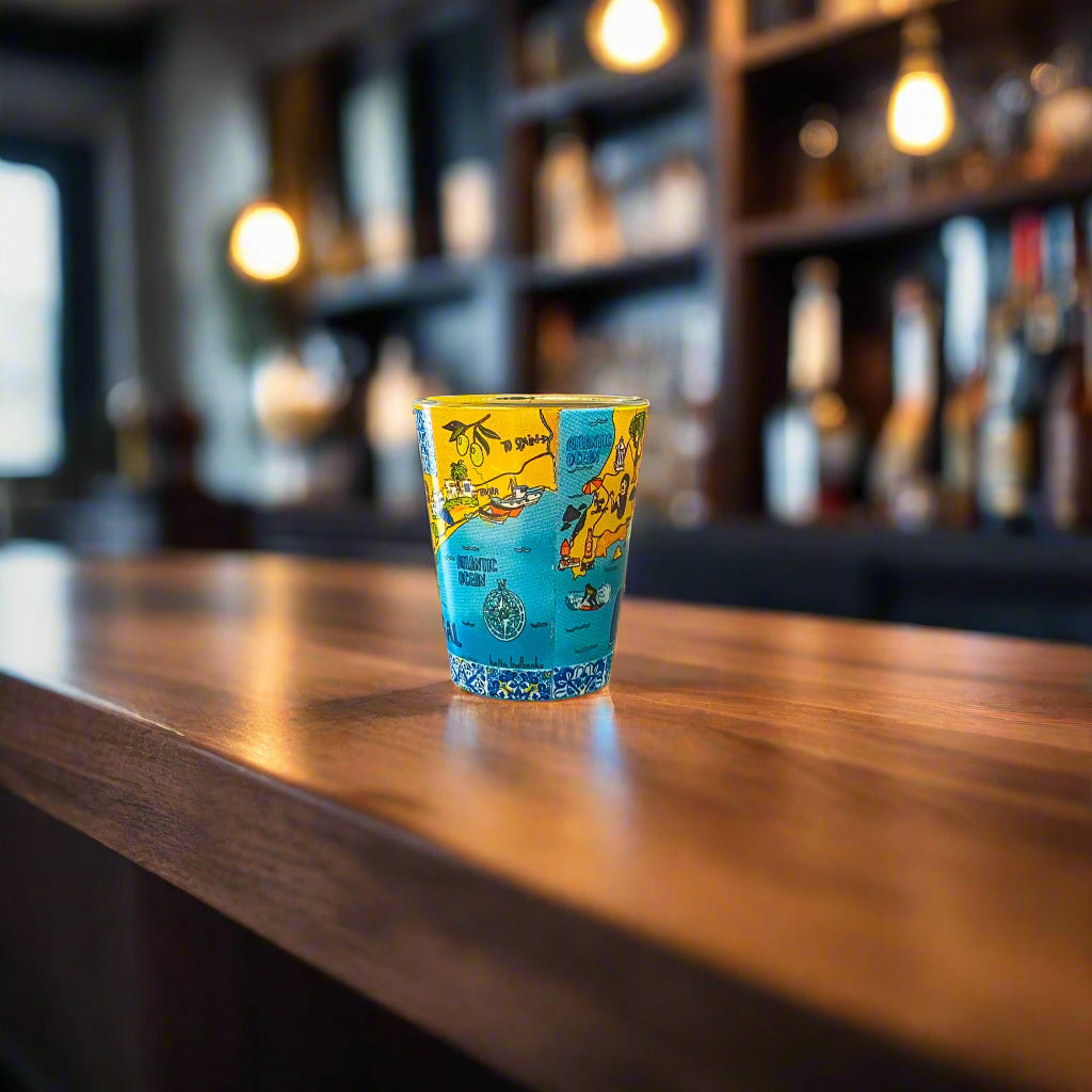 Die Algarve ist ein Schatz portugiesischer Kultur und Natur. Mit ihren von Klippen gesäumten Buchten, maurisch beeinflusster Architektur und kulinarischen Traditionen überrascht es nicht, dass diese Region Besucher aus aller Welt anzieht. Die auf diesem Shotglas dargestellte Karte feiert die Vielfalt und den Reichtum der Algarve und verwandelt ein einfaches Trinkgefäß in eine visuelle Reise durch sonnenverwöhnte Städte, historische Leuchttürme und malerische Küstenansichten.