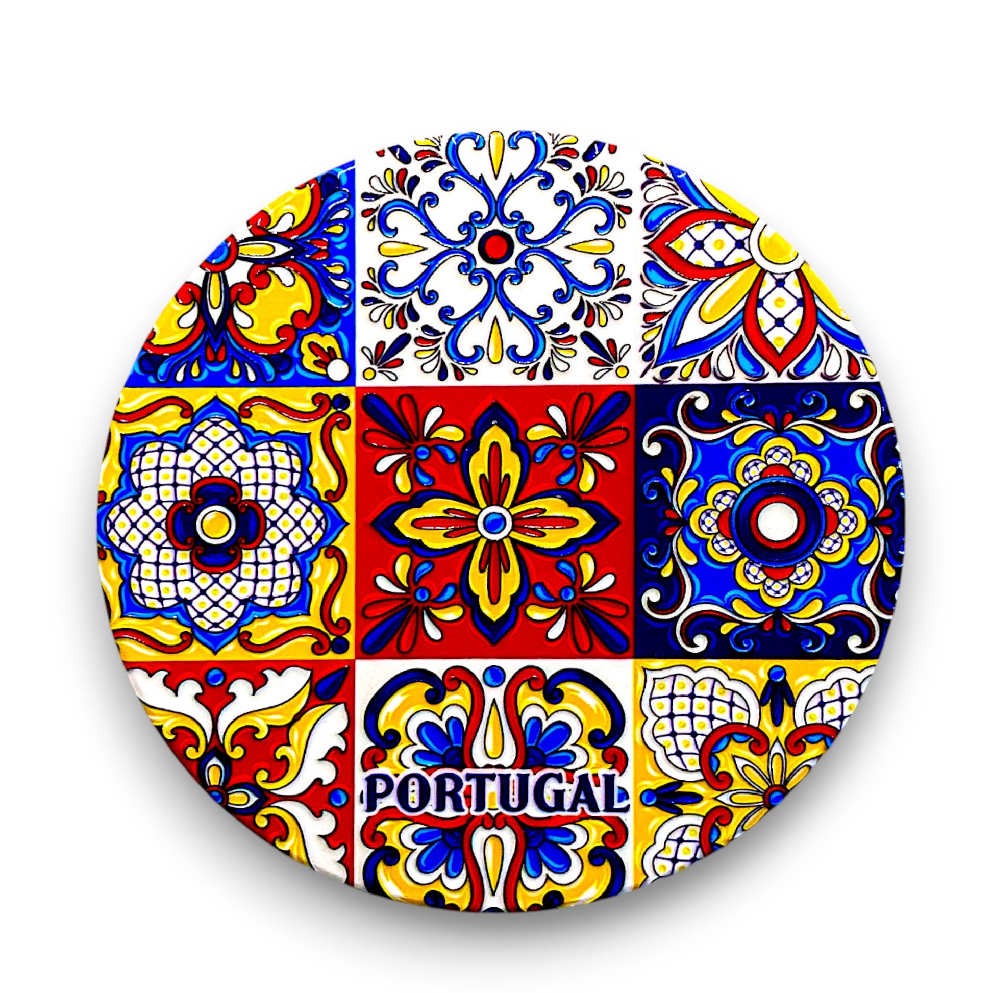 Die keramische Oberfläche des Untersetzers zeigt neun einzigartige Fliesenmotive in satten Rot-, Gelb-, Blau- und Weißtönen, die zu einem harmonischen Mosaik angeordnet sind. Jedes Quadrat spiegelt die Kunstfertigkeit des portugiesischen Azulejo-Erbes wider, einer Tradition, die bis ins 16. Jahrhundert zurückreicht, als dekorative Fliesen ein integraler Bestandteil der architektonischen Identität des Landes wurden. Das Wort Portugal ist dezent in das Design eingearbeitet, wodurch es sowohl ein funktionaler Gegenstand als auch ein charmantes Andenken ist.
