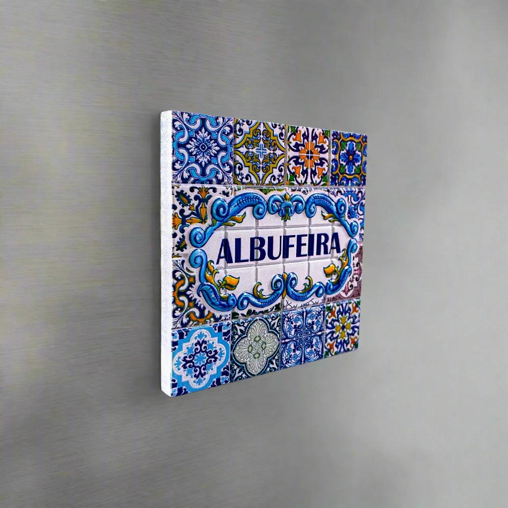 Ce souvenir d'Algarve, Albufeira, est la représentation parfaite de l'art des carreaux portugais. L'aimant carré ajoute une touche de charme à votre réfrigérateur et constitue un cadeau unique. Apportez un morceau du Portugal dans votre maison avec cet aimant Albufeira.