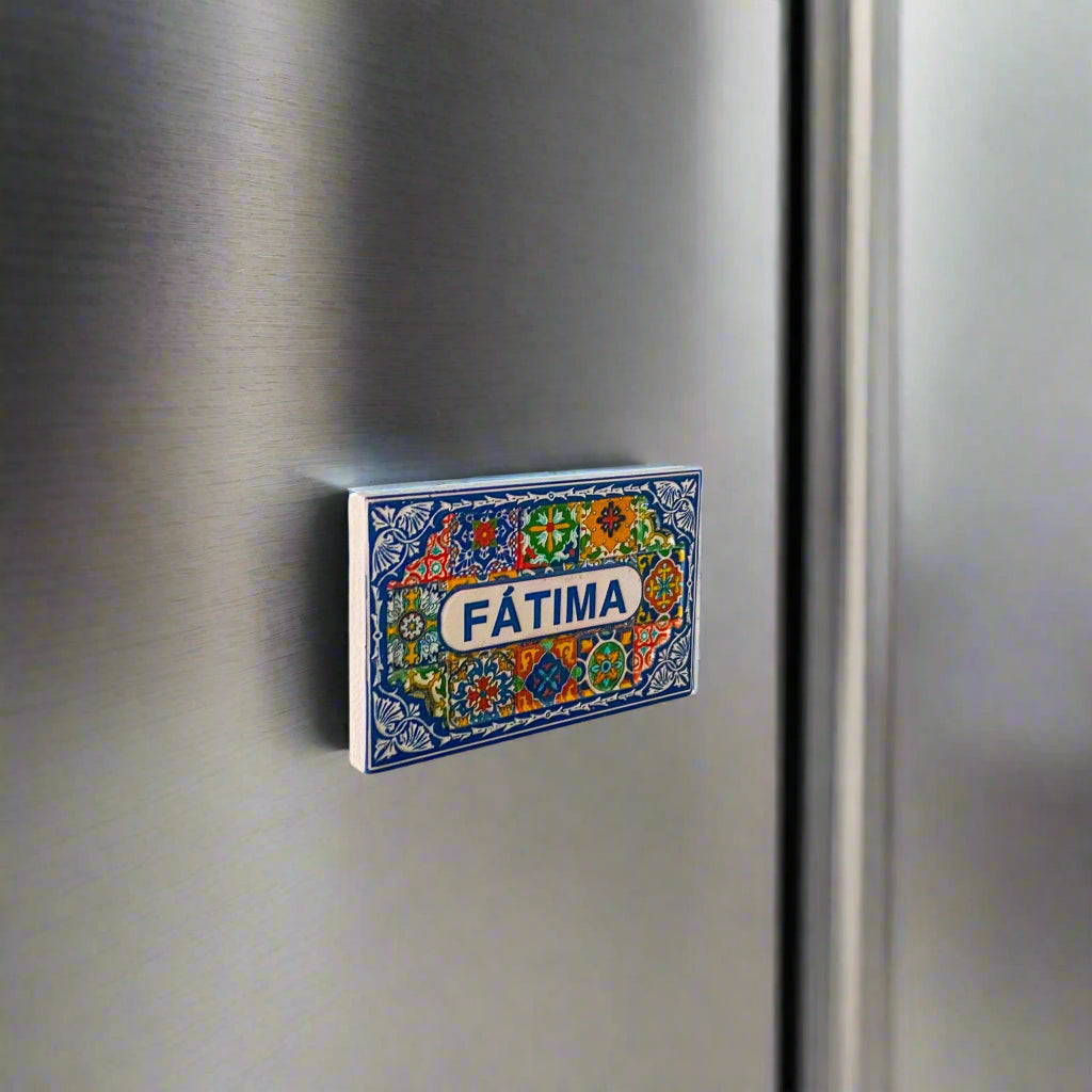 Rendez hommage à l'une des destinations spirituelles les plus vénérées du Portugal avec cet aimant de réfrigérateur Fátima, orné d'une mosaïque éclatante de carreaux portugais aux couleurs riches. Le nom « Fátima » est encadré au centre, entouré d'une bordure de motifs traditionnels reflétant à la fois un héritage artistique et un profond respect culturel.