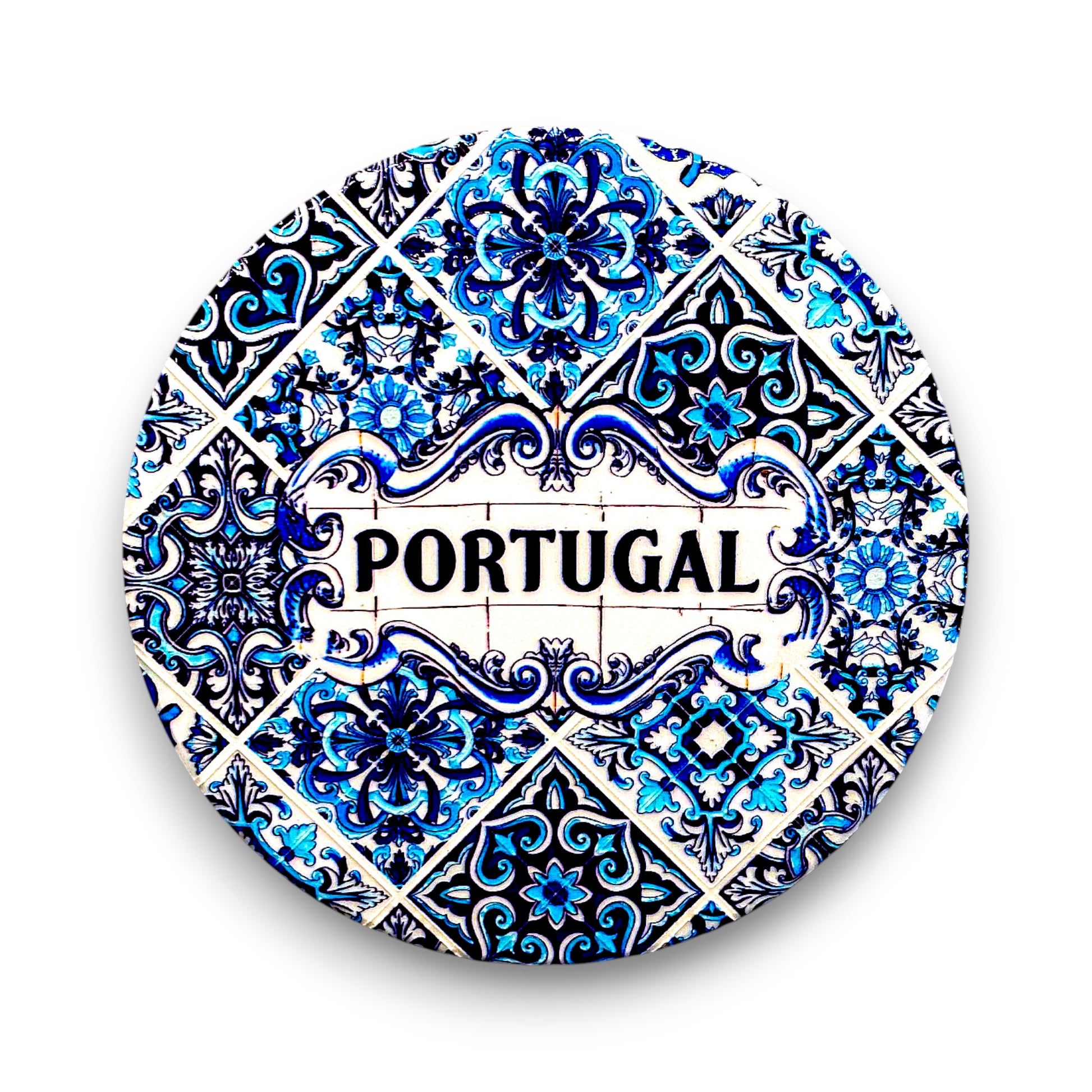 A superfície cerâmica do porta-copos apresenta um patchwork detalhado de padrões tradicionais de azulejos em azul-marinho profundo, azul-céu e branco, cada um com motivos florais e geométricos ornamentados. No centro, a palavra Portugal está emoldurada por uma borda graciosa em forma de pergaminho, criando um ponto focal perfeito. Inspirado nos azulejos que adornam as fachadas, palácios e fontes de Lisboa, este design reflete as influências mouriscas de Portugal, a história marítima e a dedicação ao artesanato artístico.