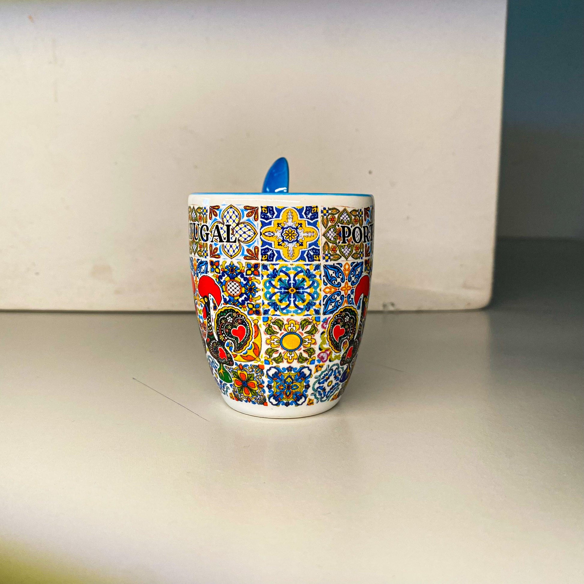 Experimente a essência de Portugal em cada gole com esta chávena de café em cerâmica, lindamente decorada com o icónico Galo de Barcelos e um mosaico vibrante inspirado nos tradicionais azulejos portugueses. Disponível em duas versões — com colher vermelha ou azul — esta peça combina praticidade e charme, tornando-a perfeita para o seu ritual diário de café ou como um presente pensado.